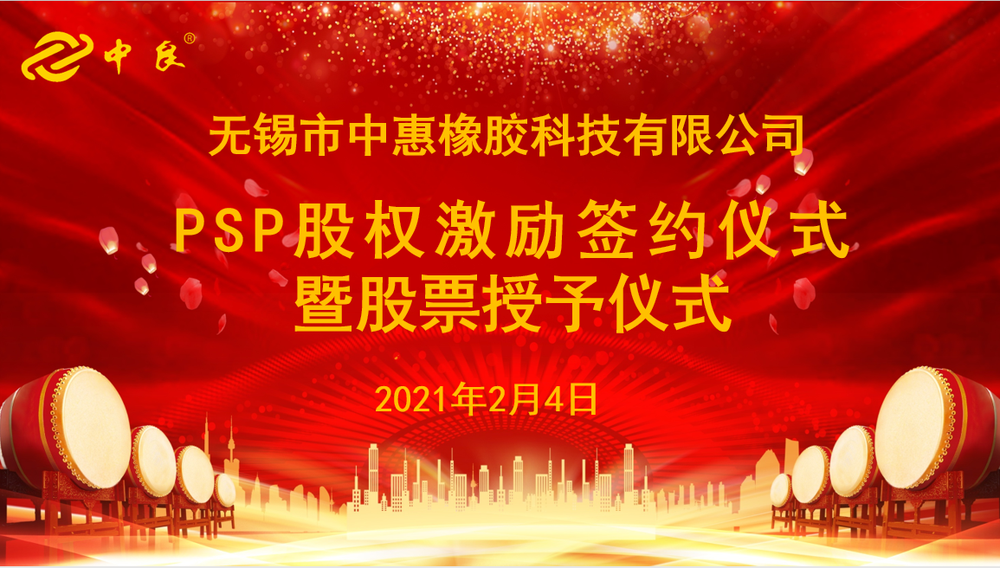 企之强者、企之大者,不为一己私利,而为员工利益(亦或员工长远发展)、客户利益、社会责任、股东利益兼而有之,方能恒强恒大也!为了搭建真正共赢的企业发展机制,增强员工的战斗力和凝聚力,使一个人操心的公司转变为一个团队操心的公司,无锡市中惠橡胶科技有限公司股东自2021年开始导入PSP股权激励,计划每一年推出一期,本期800万股已于2021年2月4日授予到位。